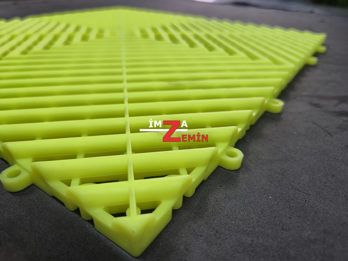 Açık Yeşil Detailing Zemin, Dayanıklı yapısı ve modern görünümüyle dikkat çeken sert PVC zemin karoları, farklı renkleriyle ıslak ve yoğun kullanılan alanlar için ideal bir çözümdür. Oto galeriler, oto yıkama istasyonları, tamirhaneler ve showroomlarda hem güvenli hem de şık bir zemin sunar. Altından su geçirebilen yapısı sayesinde zeminlerde su birikimi olmaz, kaymaz yüzeyi ile güvenlik sağlar.