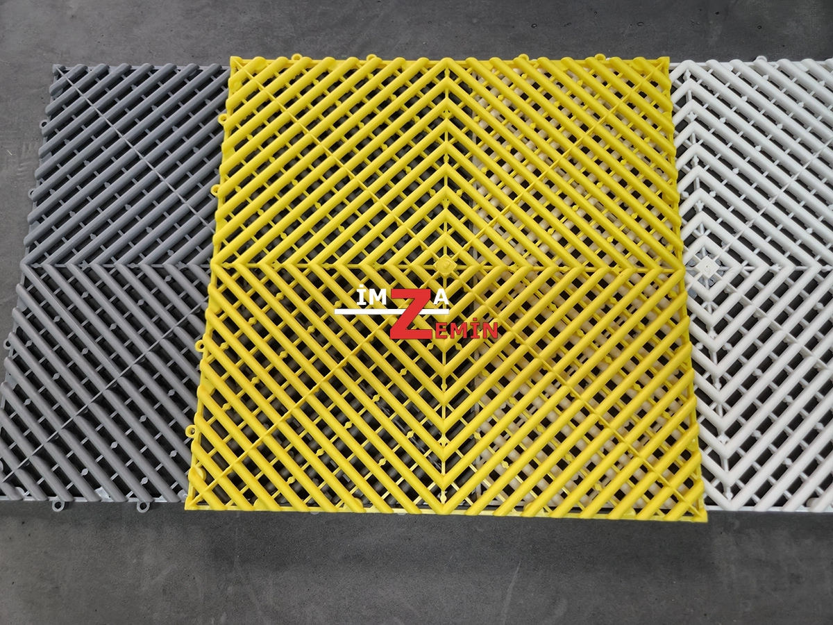 Sarı Detailing Zemin, Dayanıklı yapısı ve modern görünümüyle dikkat çeken sert PVC zemin karoları, farklı renkleriyle ıslak ve yoğun kullanılan alanlar için ideal bir çözümdür. Oto galeriler, oto yıkama istasyonları, tamirhaneler ve showroomlarda hem güvenli hem de şık bir zemin sunar. Altından su geçirebilen yapısı sayesinde zeminlerde su birikimi olmaz, kaymaz yüzeyi ile güvenlik sağlar.
